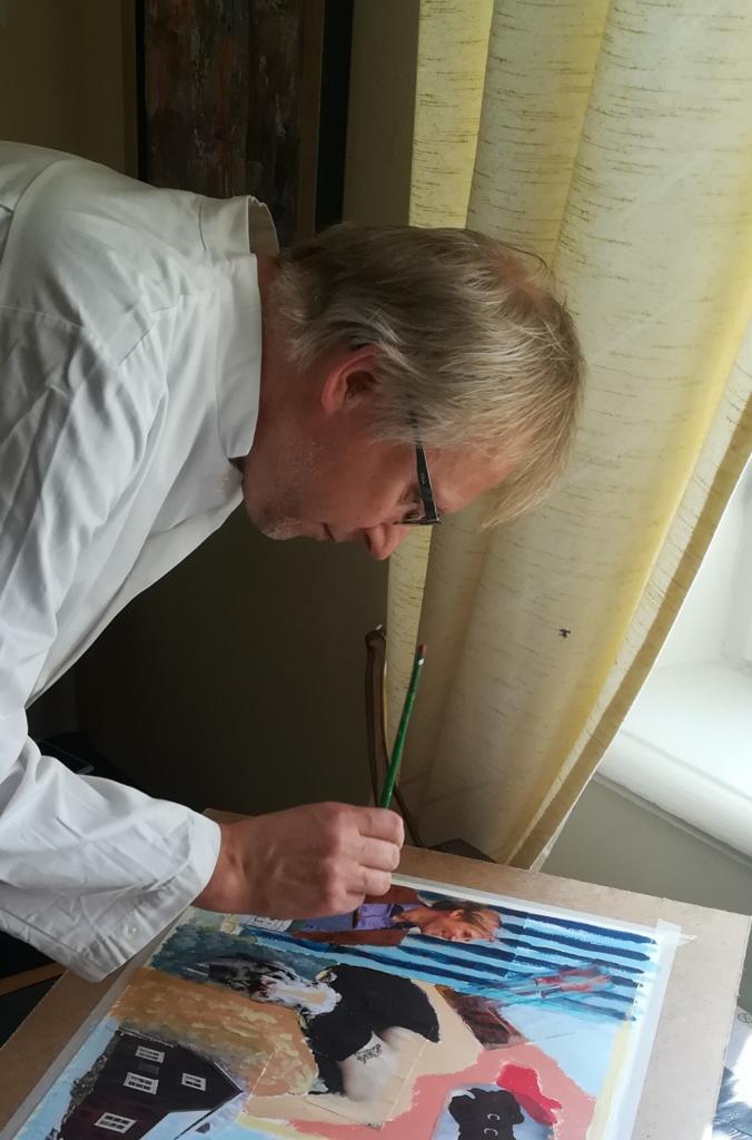 Päivän aikana taiteillaan piirtäen, maalaten ja kollaasitekniikkaa tehden kuvataitelijan ohjauksessa.